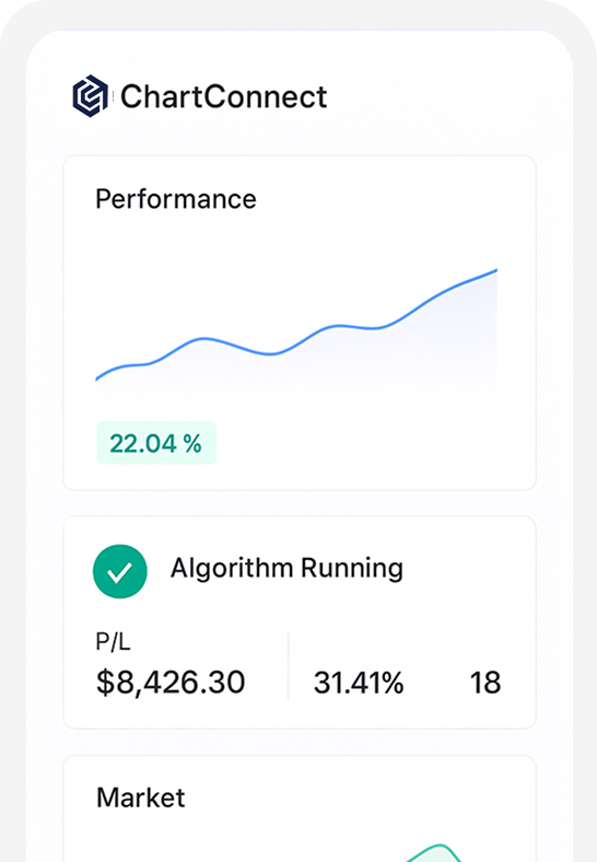 Connect your charts to your preferred broker or exchange. Your trades execute instantly — no human error, no delay. See how your Algo profits in real time, with integrated features to manage it all.